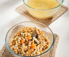 350 g courgette in blokjes. 1500 g de bebida de soja sin aditivos a temperatura ambiente. 140 g de tomate entero en conserva.