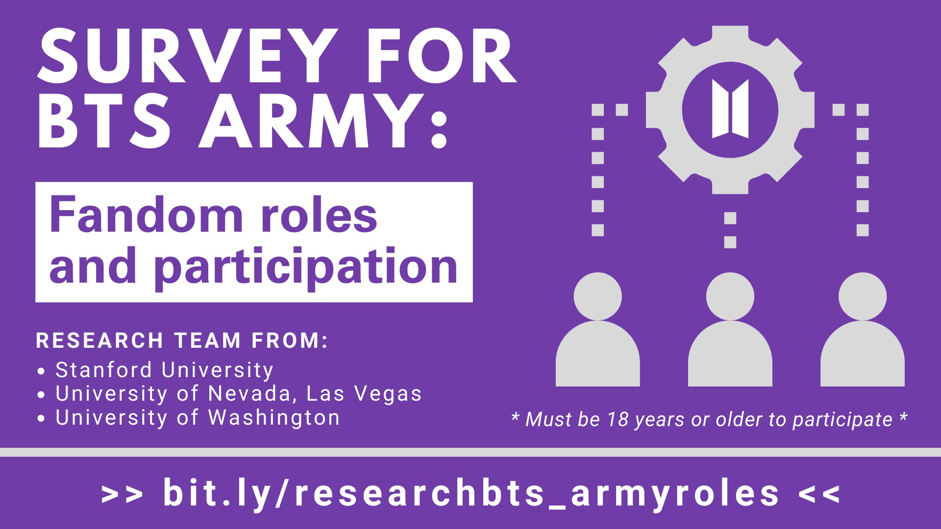 Research Bts On Twitter Research Survey Hey Army Researchers From Stanford Unlv Me And Uw Are Working On A New Study Focused On Fandom Roles And Participation